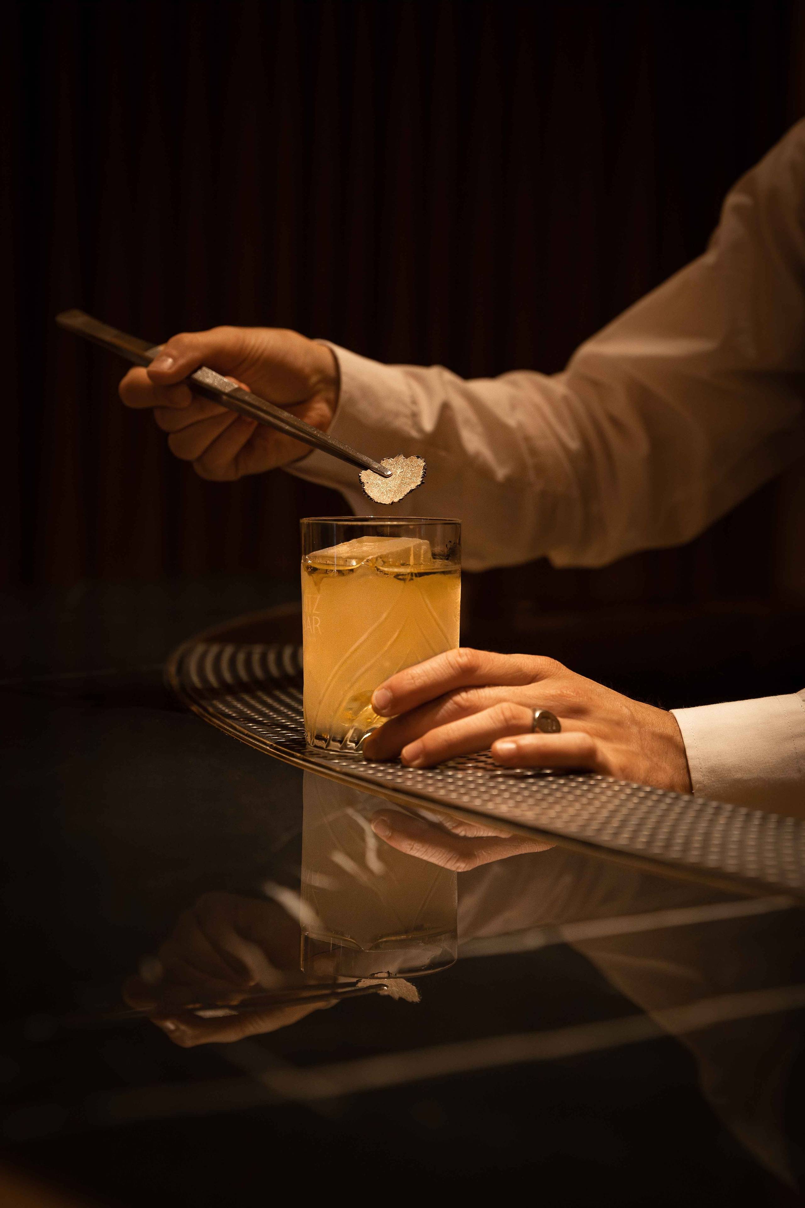 Deep velvet, amber metal and antique columns make up the intimate decor of the Ritz Bar. In the center of the room, a luminous bell projects constellations on the ceiling, contrasting golden flashes with shadow play. The list features a selection of signature cocktails, spirits and organic wines, accompanied by tapas and caviar. Inspired by nature and his materials, this is where Romain de Courcy reimagines mixology.